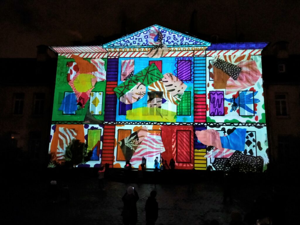 Les œuvres ainsi créées sont alors projetées sur des façades ou des objets, tel un tableau abstrait.